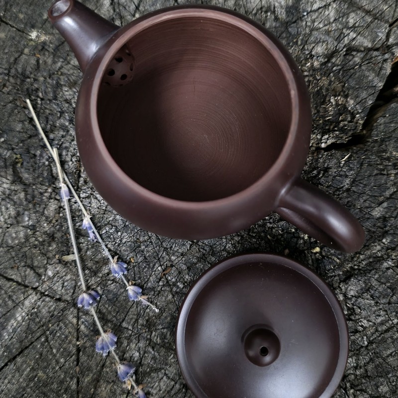 Глиняный чайник для заваривания чая традиционным китайским способом — методом пролива. Чайник выполнен из китайской глины, которая хорошо удерживает тепло, что очень важно при заваривании пуэров, сильно ферментированных улунов и красного чая.