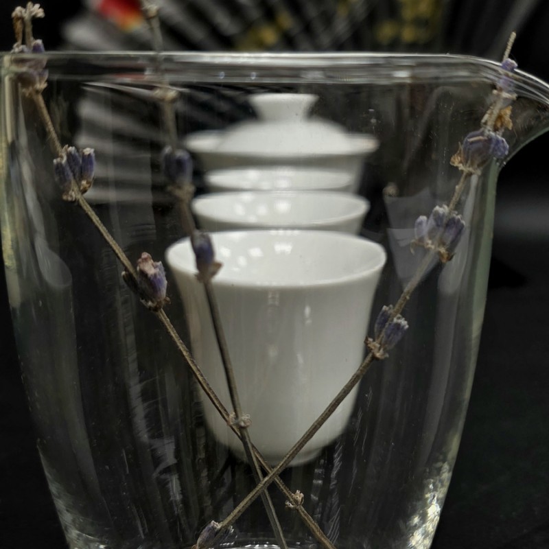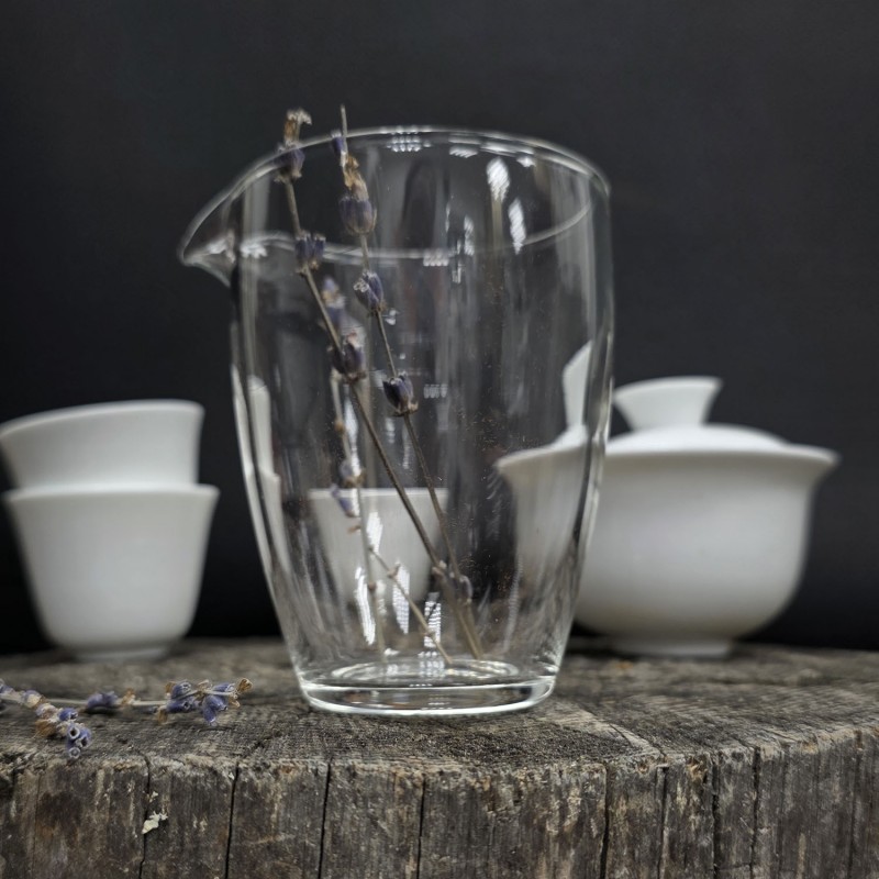 · Чахай (фарфор): «чаша справедливости» из стекла. Уравнивает вкус чая для всех участников церемонии и позволяет оценить букет перед тем, как разлить напиток по чашкам.